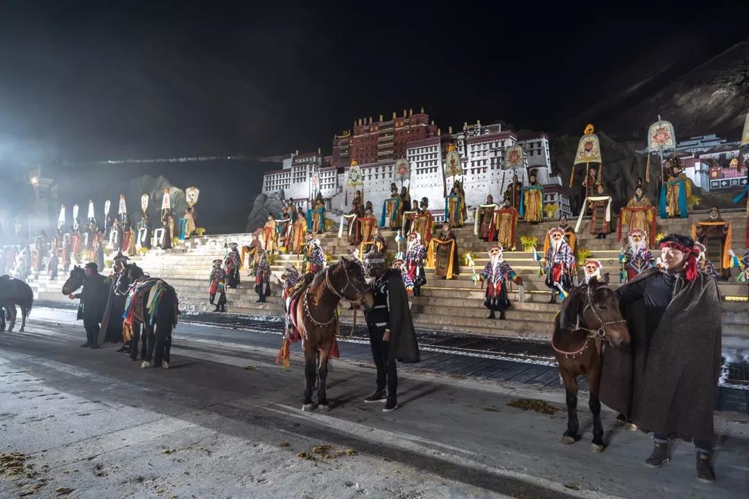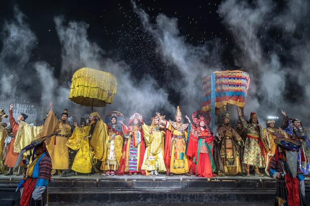 淡月微云,星子漫天,华彩流光中鼓声撼地,宝瓶山顶雪色静谧,文成公主与松赞干布在此良辰终成嘉礼,汉藏和美千年佳话浸润心间……